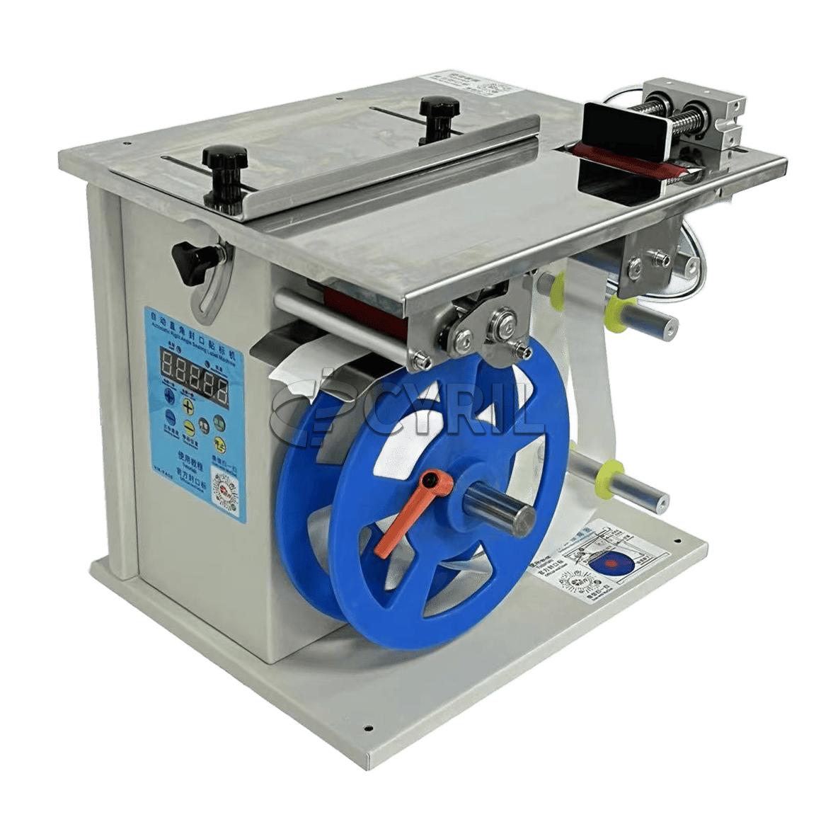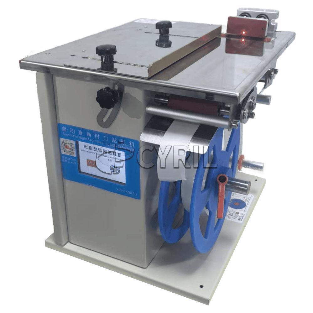 Semi-automatic right angle labeling machine